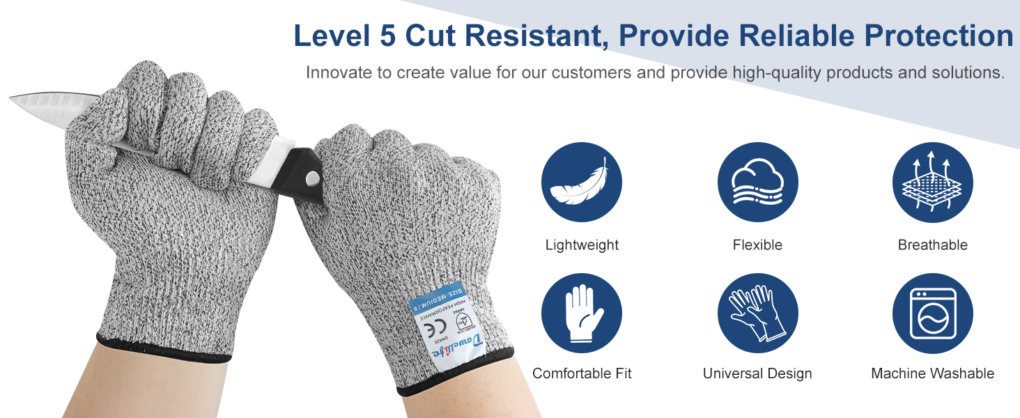 • Protect your hand from cuts and abrasions—The high performance cut resistant material HDPE is adopted and the gloves is awarded with the highest EN388:2003 level 5 (EN388:2016 Level C) cut resistance certification. 10 times stronger than normal gloves.