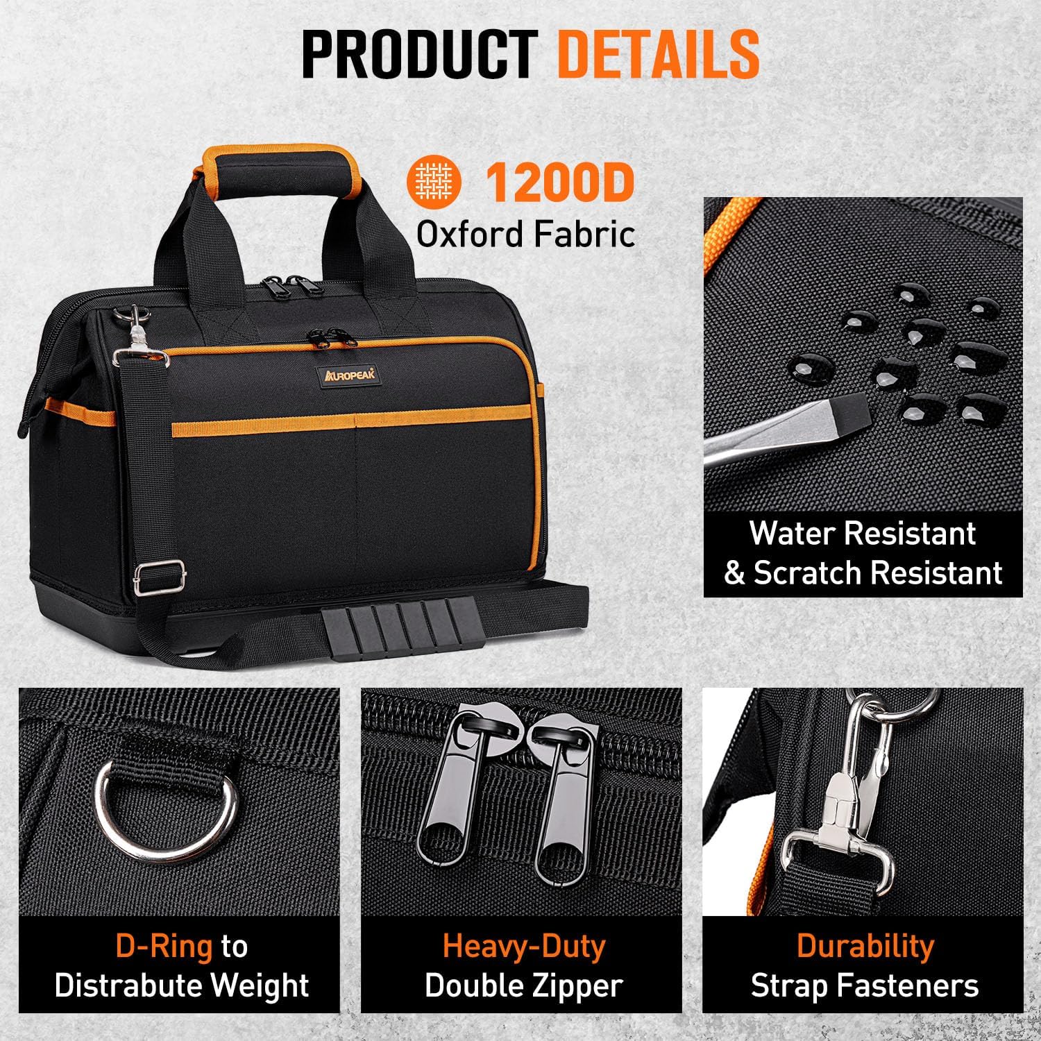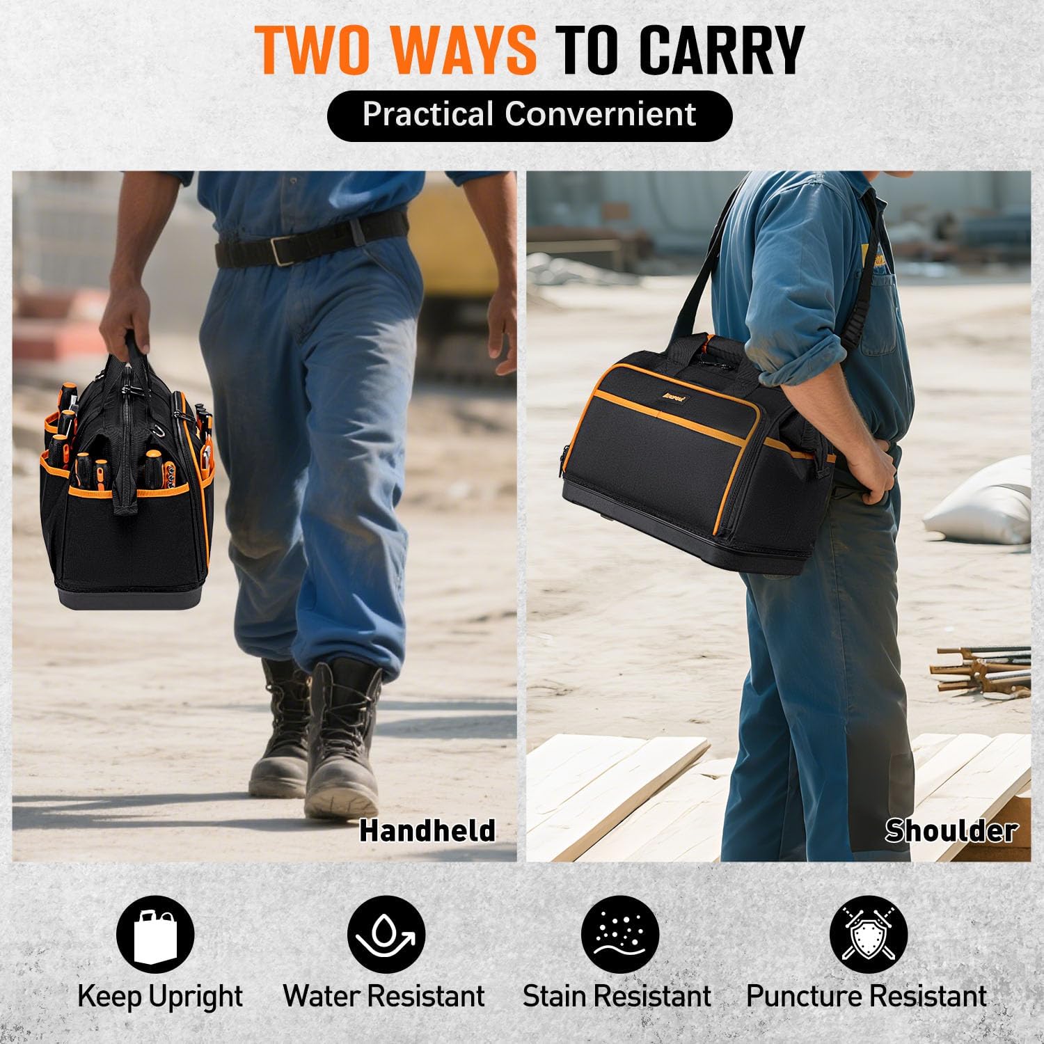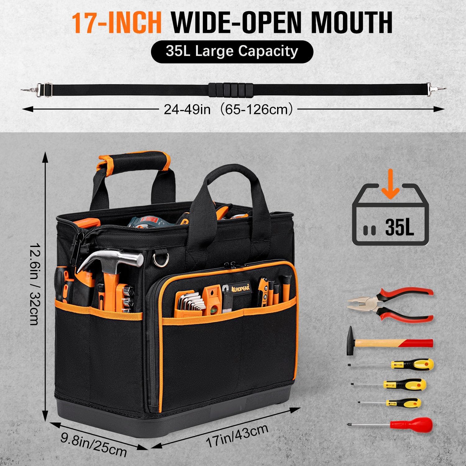 Electrician Tool Bag 17-Inch, 26-Pocket Large Tool Bags for Men Women with Waterproof Hard Bottom & Adjustable Shoulder Strap, Tool Bag Organizer for HVAC Craftsman Contractor Carpenter Electrician